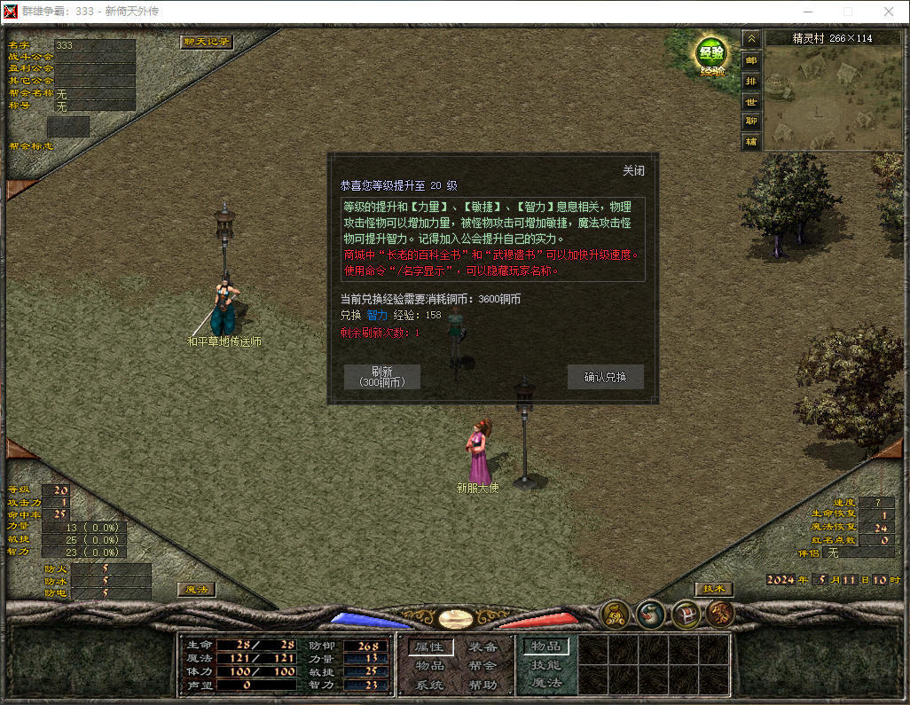 2024年6月3日19:00开服后长期有效:(在精灵村(250,124)处找【等级礼包大使】领取)
